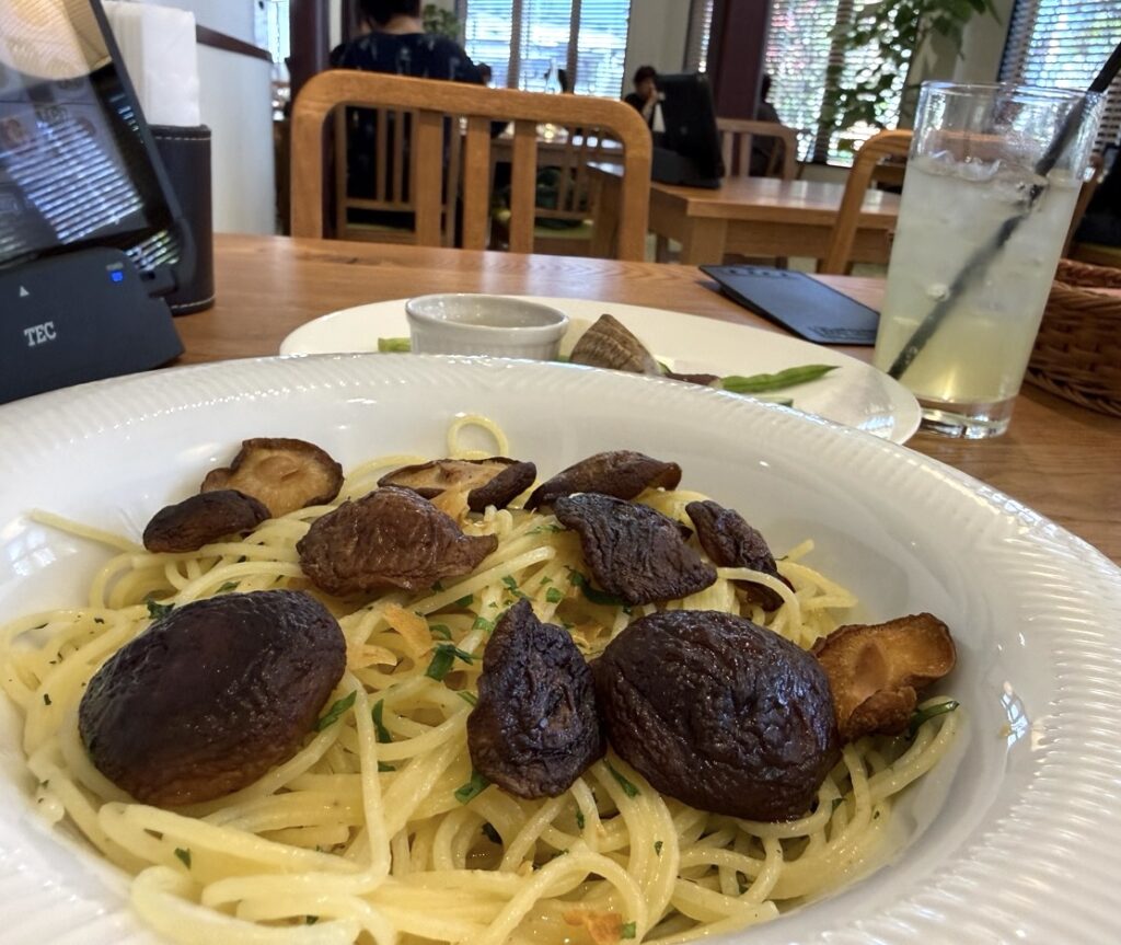 選んだパスタは日替わりのパスタ。この日の日替わりパスタは「原木椎茸のペペロンチーノ」。
