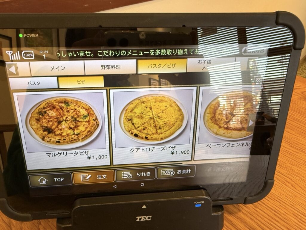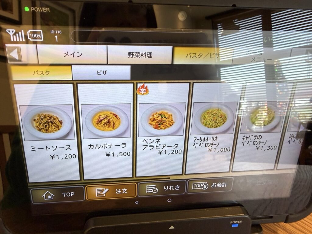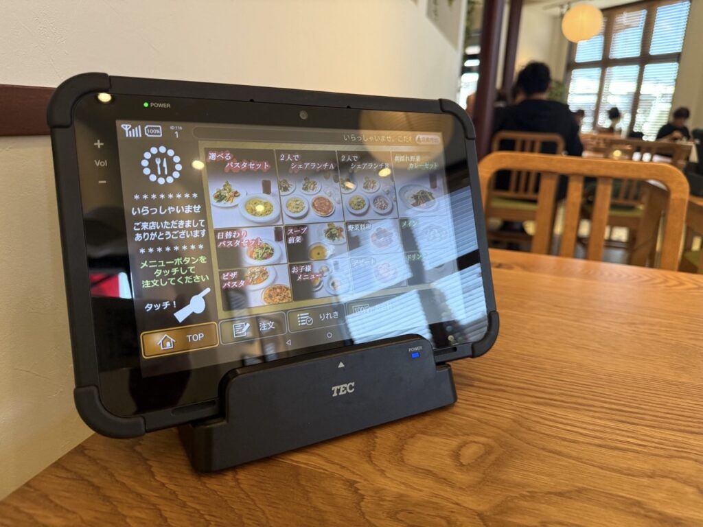 注文はタブレットから。シェアランチなどのメニューが分かりづらい(AセットとBセットの区別がつきづらい)ので入口のところのメニューを確認しておくのがおすすめです。