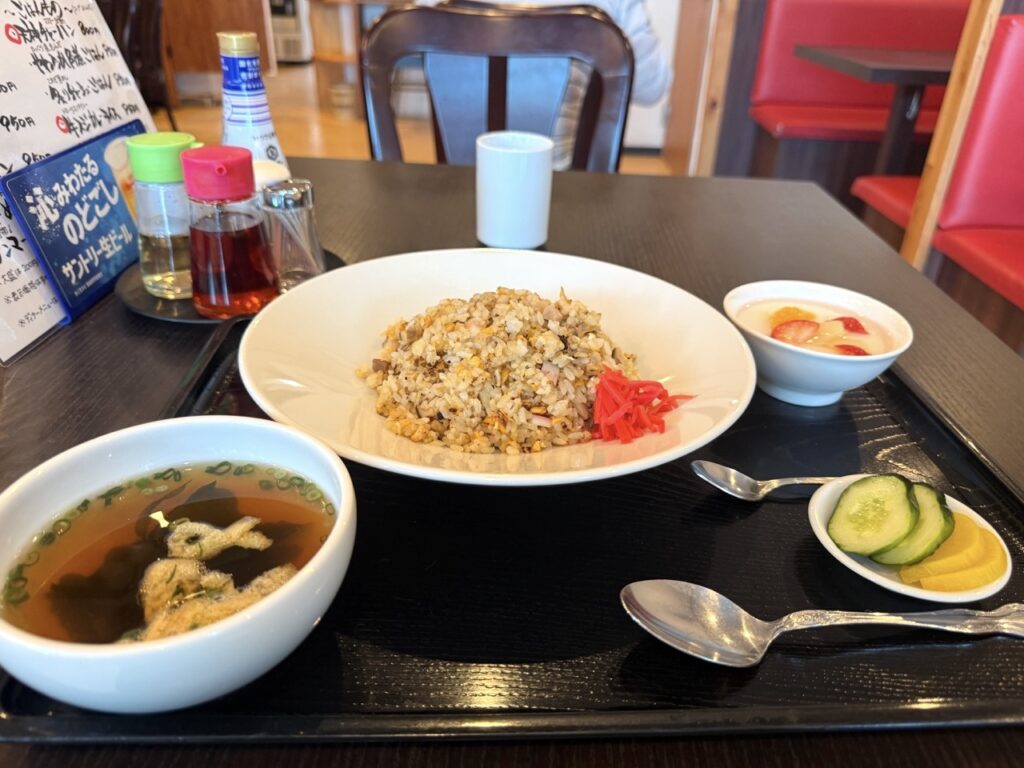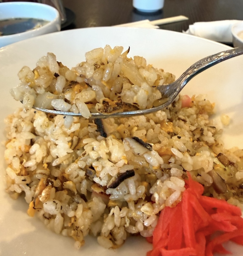 見た目よりもボリュームもありました。油っこさが控えめで、食べやすい味。添えられた紅しょうががさっぱりとしたアクセントとなります。