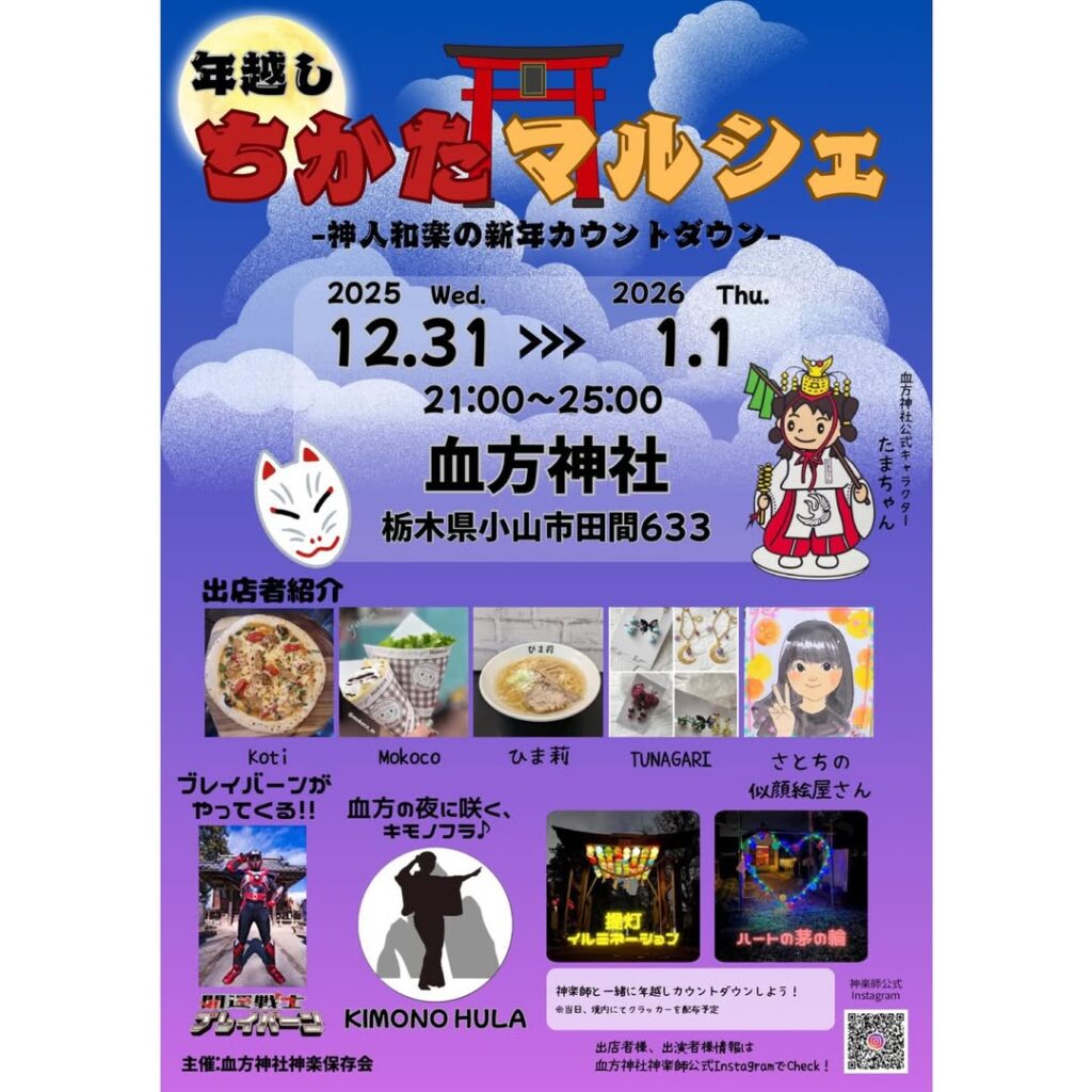 - 日時:12月31日 除夜神楽祭 23:00〜 、年越しちかたマルシェ21時〜25時