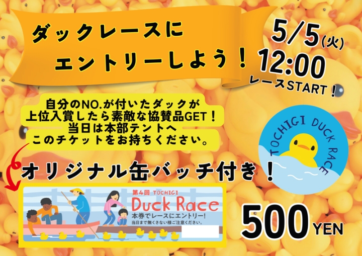 「とちぎダックレース」のイベント情報をお届け!