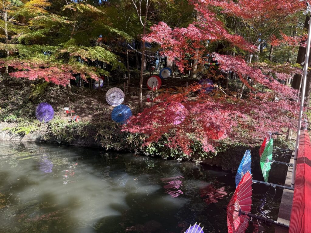例年秋には、和傘が飾られ紅葉とのコラボレーションが見事!ライトアップも開催されます。