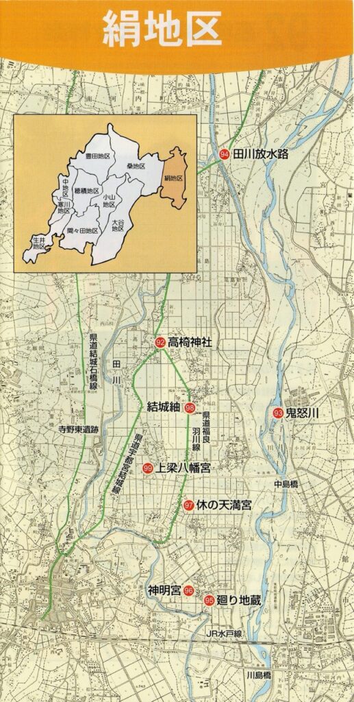 ところがところが、大変興味深いことに、いまの絹地区南部(高椅たかはし郷など)は下総国結城郡に属していたのです(下総国と下野国の間を行ったり来たりしたそうですが)。