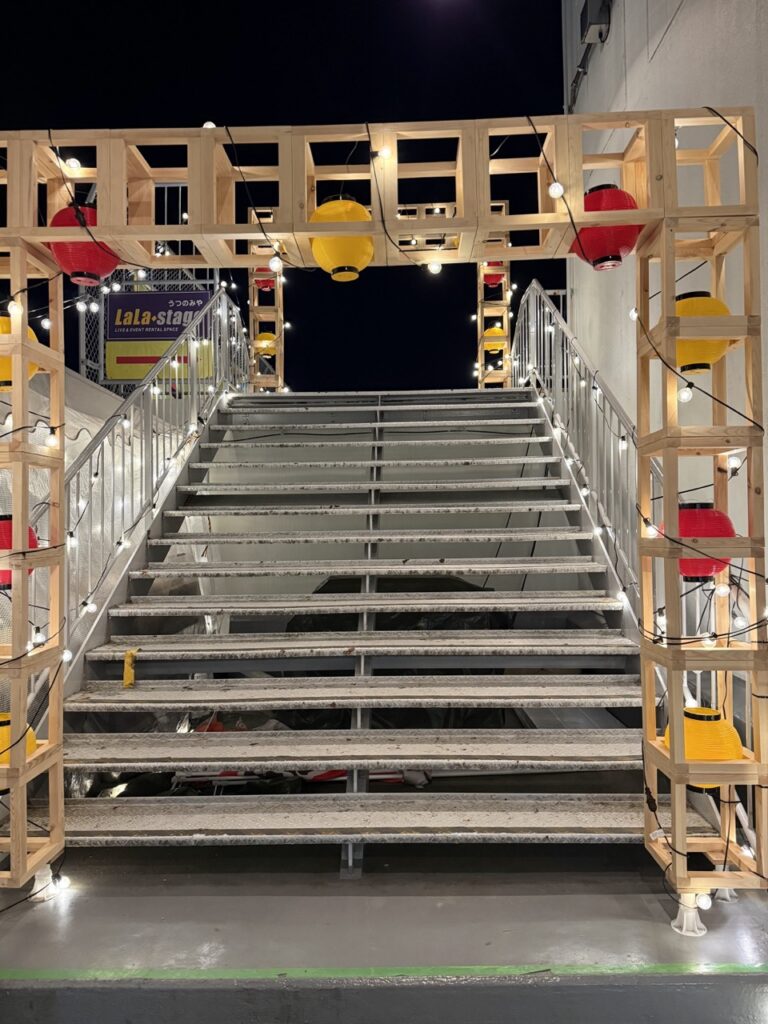 入口にお祭りのようなやぐらが組んであり、ワクワクします。