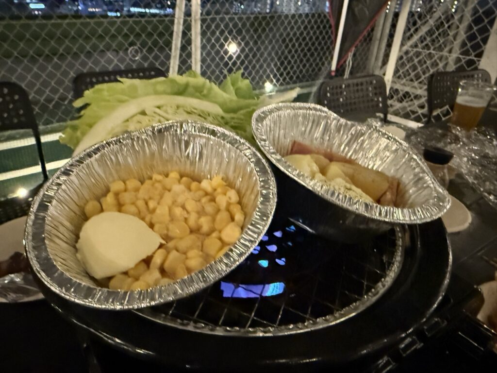 準備や後片付けが不要で、気軽にアウトドア気分が味わえるのはいいですね。駅から徒歩2分のアクセスもよく、訪れやすいのも嬉しいポイント。楽しく美味しいひとときを過ごしました。