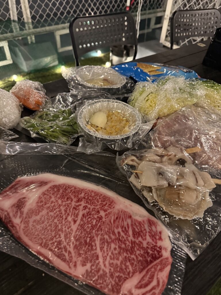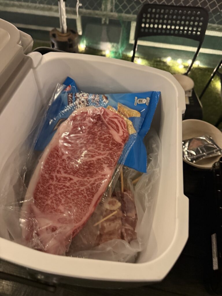 食材はすべてクーラーボックスに入って最初に提供されます。好きなペースで焼くことができます。
