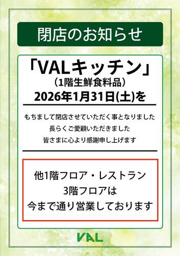 駅前に用事がある時にはVALキッチンによく立ち寄り利用していたので、個人的にも本当にショックです。
