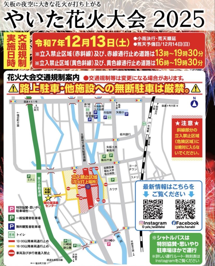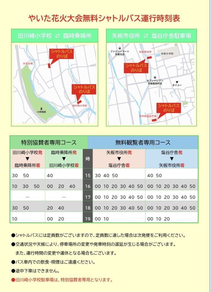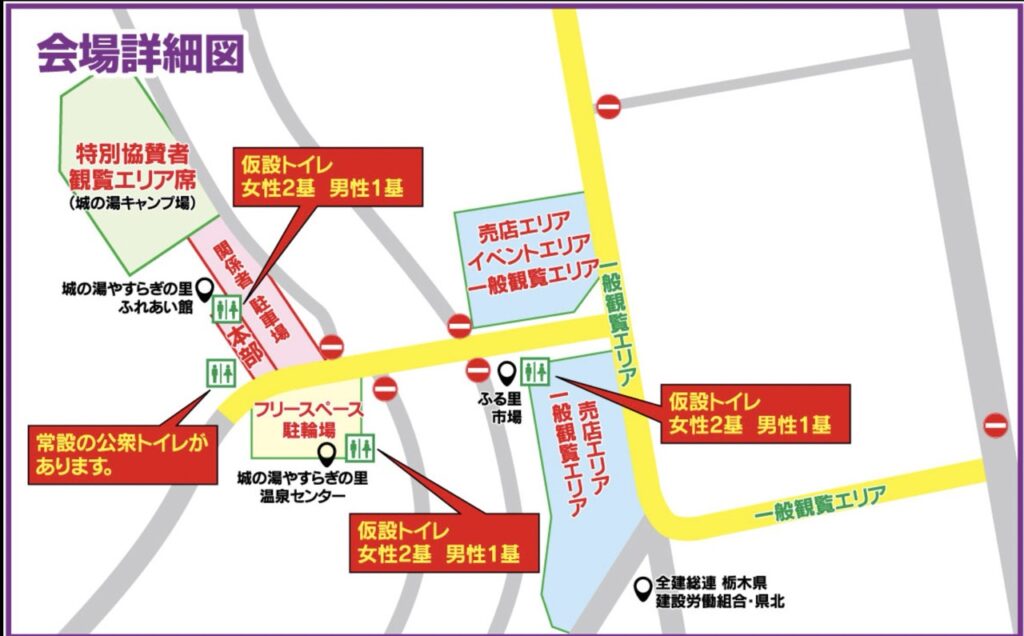 ※大会当日、城の湯やすらぎの里駐車場への車両の乗り入れはできません。また、花火大会開催中は、城の湯やすらぎの里は休業、休館します。