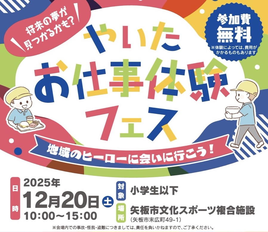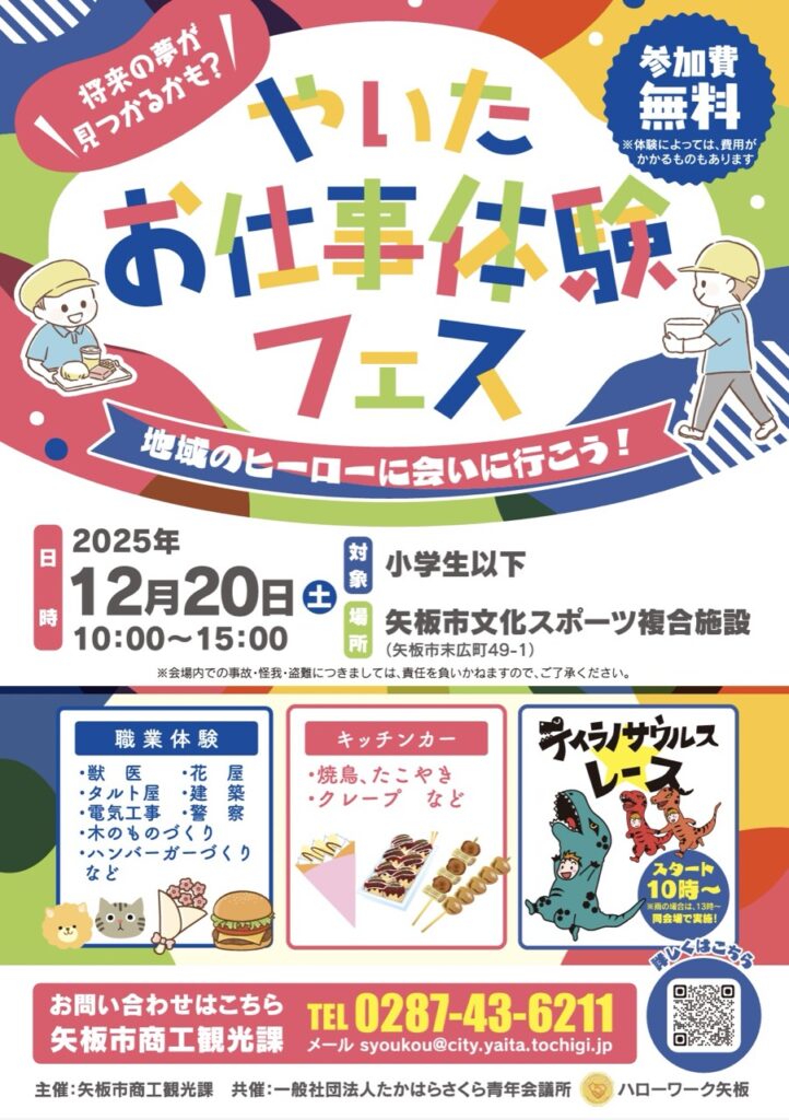 栃木県矢板市で「やいたお仕事フェス」が2025年12月20日に矢板市文化スポーツ複合施設で開催されます。