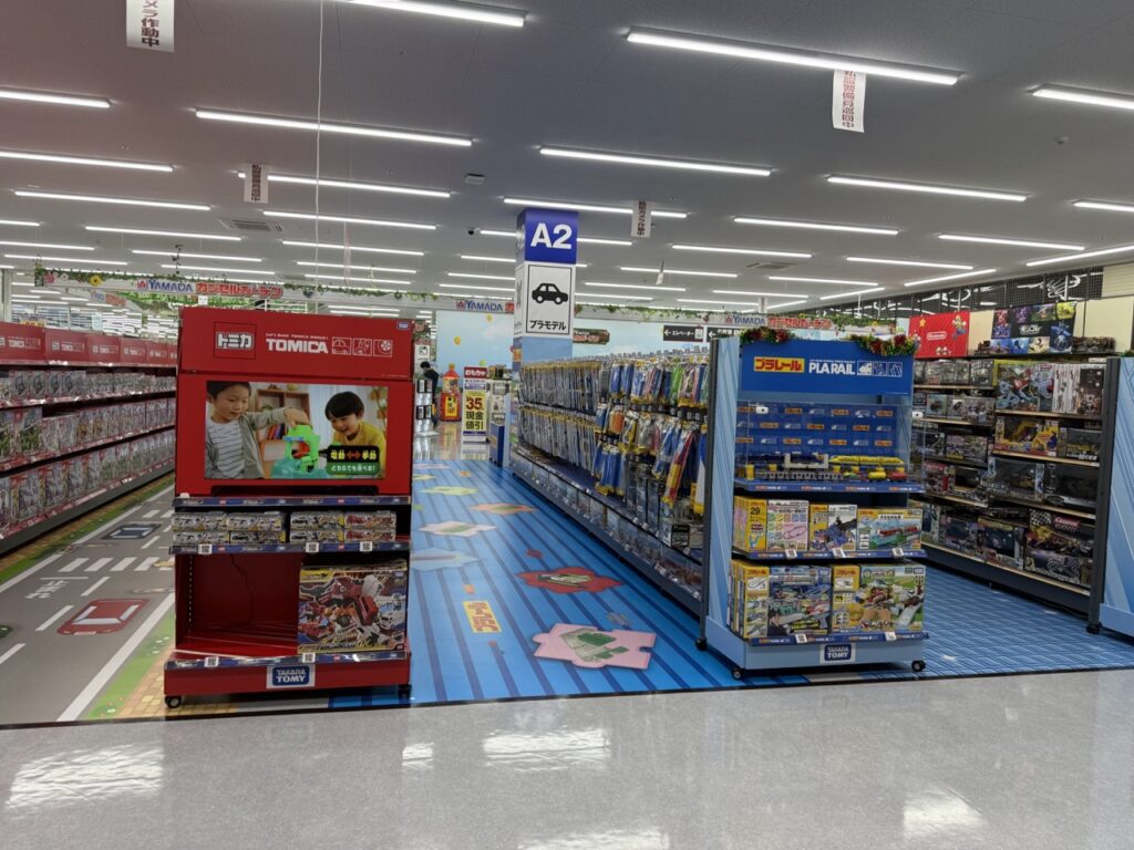 家電はもちろんですが、驚いたのはおもちゃコーナーの充実さ。おもちゃコーナーもとっても広いです。トミカ、プラレール、シルバニア…などおもちゃの種類ごとに棚が別れていて、お目当ての品を探しやすい。