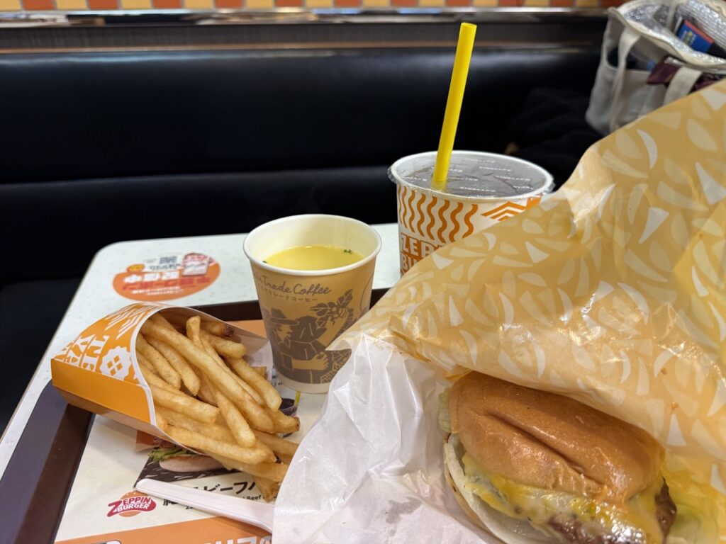 価格が高いのかと思いましたが、他のファーストフードのハンバーガー店と比べてもそれほど変わらず、しっかりと旨いハンバーガー。手軽さと満足感があります。朝7時からの営業も嬉しいですね。
