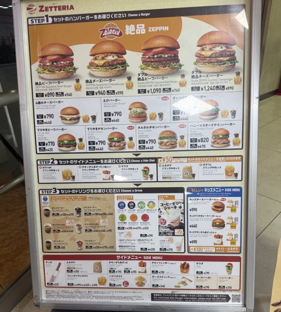 店頭のタッチパネルから注文するよりゼッテリアのアプリを入れて、アプリから注文・決済するのが早くて便利でおすすめ。(アプリだとクーポンなども使いやすいですよね!)
